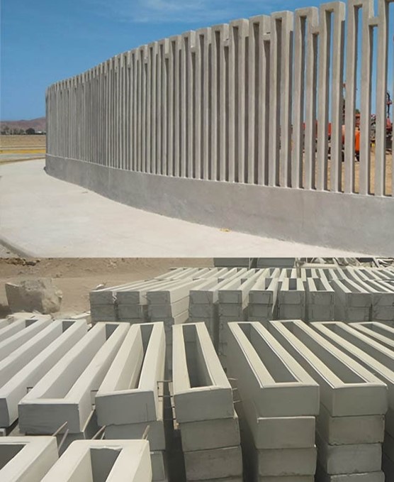 Bloques estructurales, cercos tipo placa, paneles decorativos y prefabricados de concreto.
